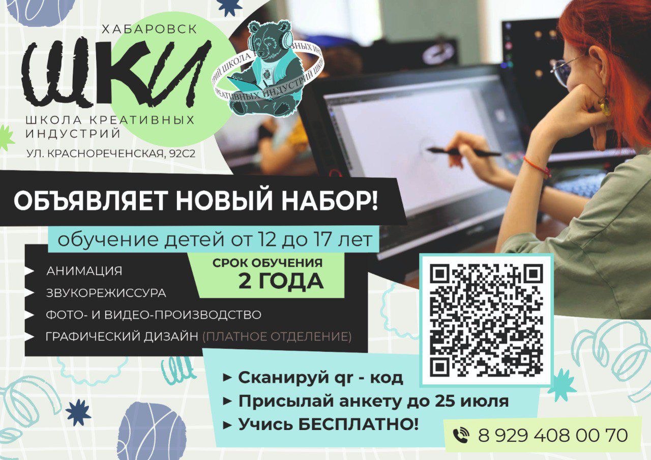 Приглашаем учеников 5-11 классов на бесплатное обучение сразу по трем направлениям: анимация, звукорежиссура и фото- и видеопроизводство (60 бюджетных мест).